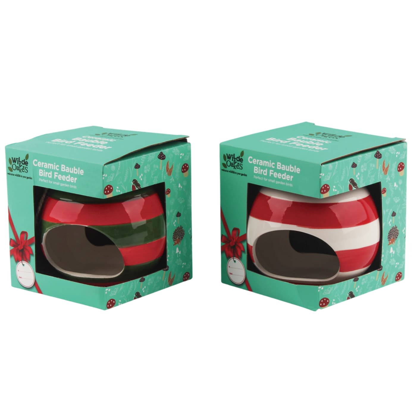 Wilde & Oakes Ceramic Bauble Bird Feeder - Red & Green.