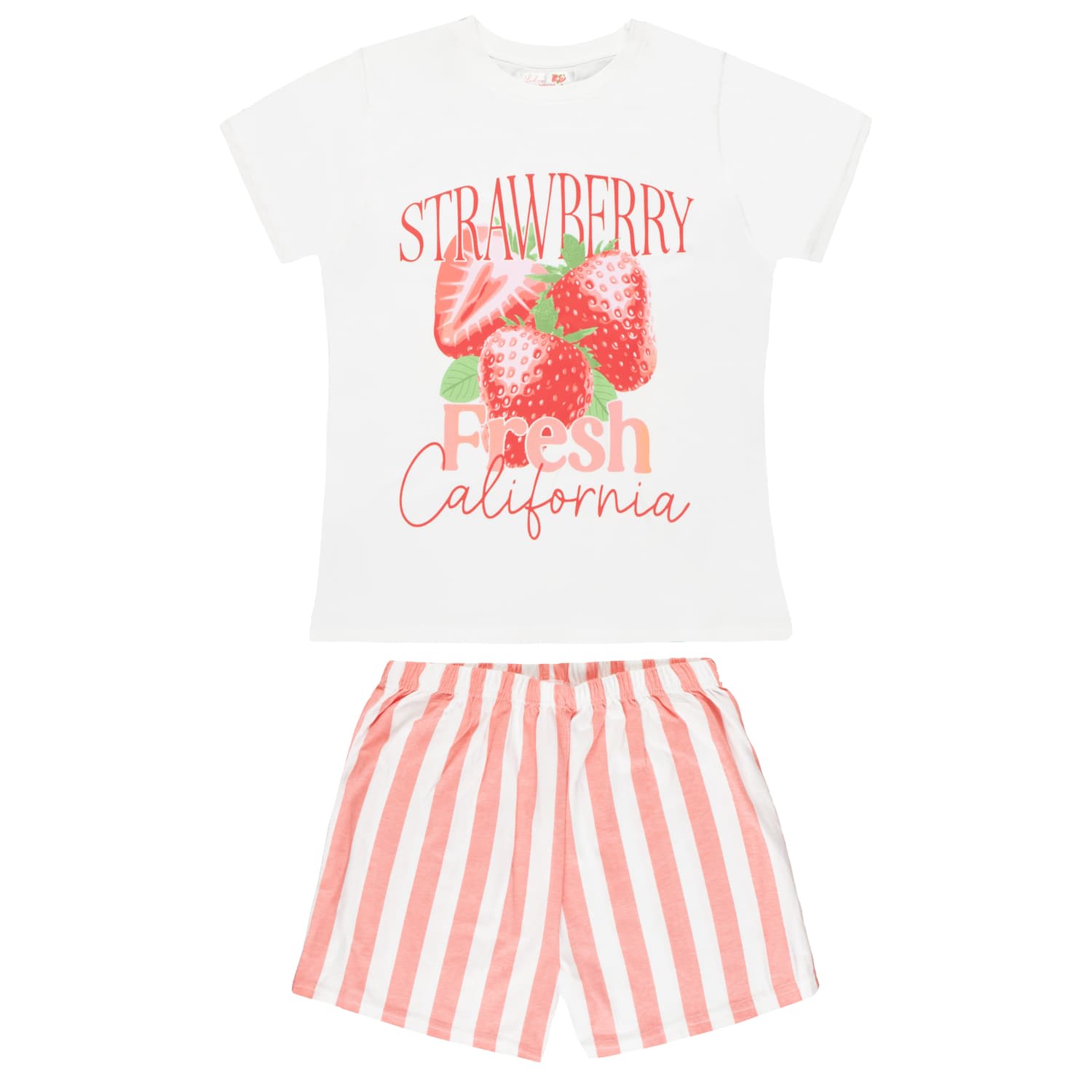Short sleeved tee and short bottoms are perfect for warmer nights, while the top features a trendy fruit design.